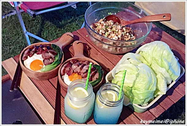 昨晚到了營地凱若還不敢睡覺急著先把隔日早餐要喝的紅茶先煮好,一早醒來就有港式早餐吃太幸福了!