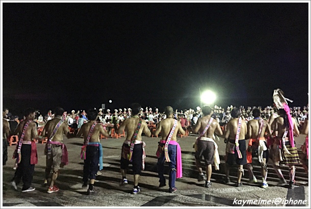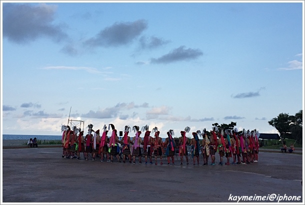 傍晚我們去靜浦部落吃飯,看到正在豐年祭,就在餐廳正對面而已,而且面對著大海,太有fu了~