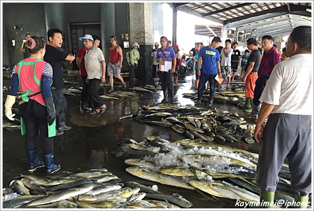 接下來開到成功漁港,好酷喔!看到現場拍賣,地上那一群一群的鬼頭刀就是被拍賣的商品
