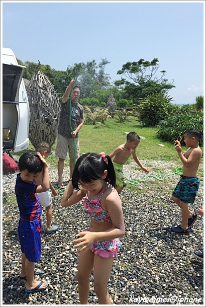 大家都覺得這邊很舒服,於是派爸爸們出去買池上便當,小朋友們玩老鷹抓小雞...