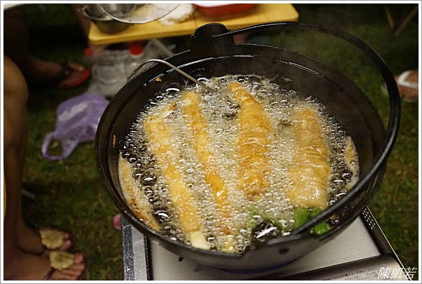 吃的時候一樣一樣慢慢炸,當時大家都說蔥大腸壓軸,結果全部炸完要換蔥大腸的時候,