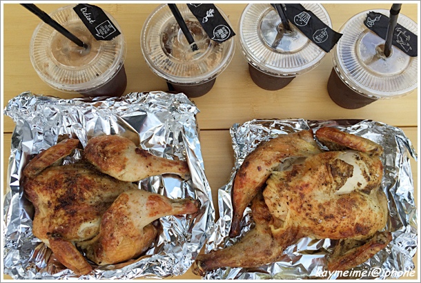 午餐我們完全沒有準備,就打算吃營區的攤商,我們訂了三隻驢子的烤雞,還有烤雞三明治,