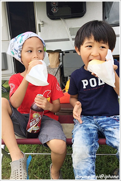 整理完自己的營地後,我們也有前夜祭,凱若去買了老天祿滷味,