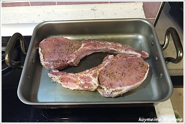 收到的隔天馬上來實驗一下,因為戰斧豬排很大一支,我找遍了家裡的鍋子都沒有可以放得下的,