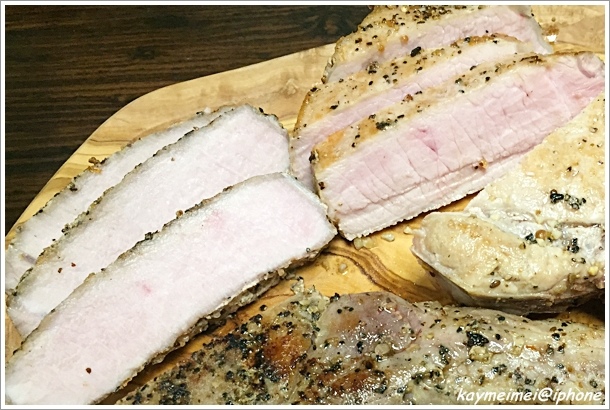煎烤版中心溫度60度出爐,剖面看起來煎烤版較粉紅,吃起來熟度相差不大,