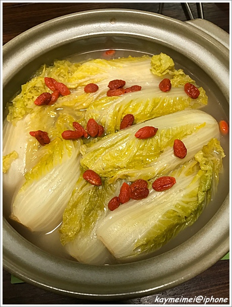 白菜火膧雞湯、桂圓紫米糕、清蒸蔥油龍虎斑、上湯娃娃菜