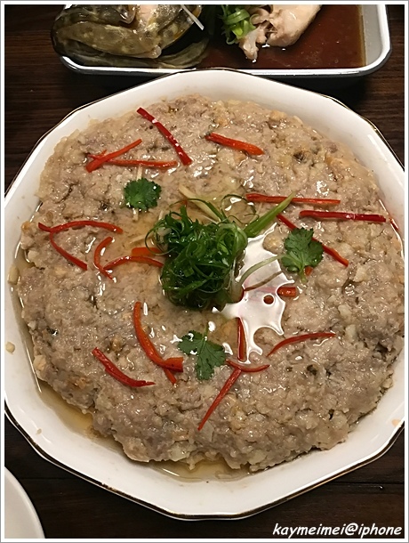 梅香鹹魚肉餅,梅香鹹魚就是馬友鹹魚,加入荸薺薑泥打到有彈性之後蒸20分鐘即可